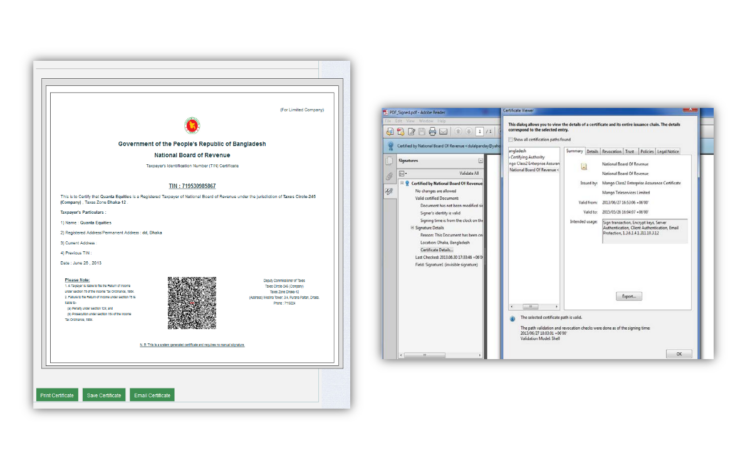 On the above change management, Mango has contributed development on automated signing on the eTIN certificates of the users in real time. In parallel Mango CA has also delivers the SSL certification of the said domain.